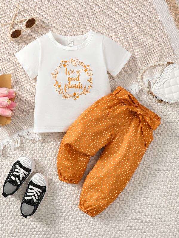 Baby Slogan Graphic Tee & Polka Dot Pants