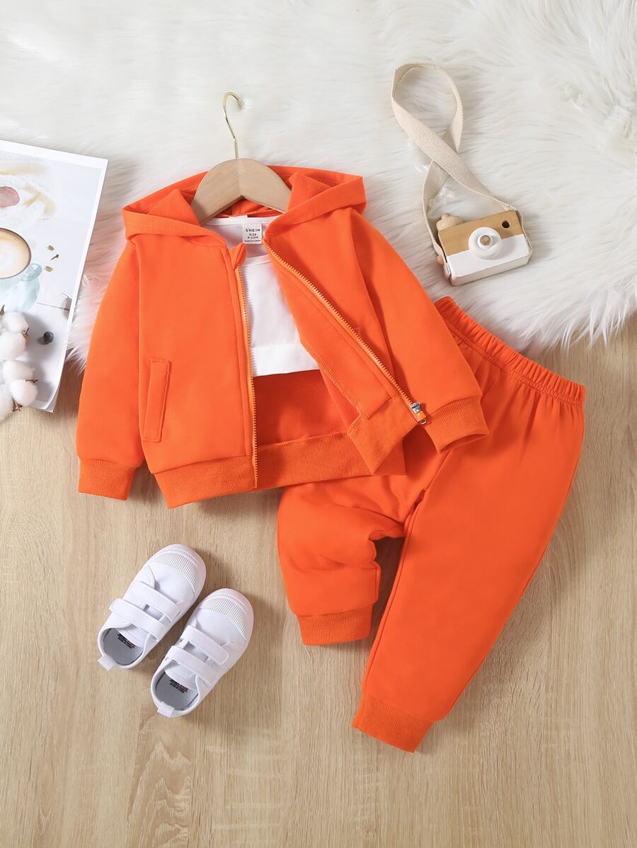 Baby Girl Solid Top & Zip Up Hoodie & Sweatpants