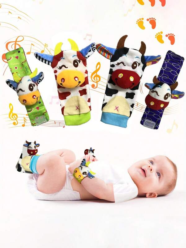 Baby Wrist Rattle Set, Infants Wearable Toy Wrist Band, Cartoon Animal Plush Toy Pacifier, Socks, And Watch Band