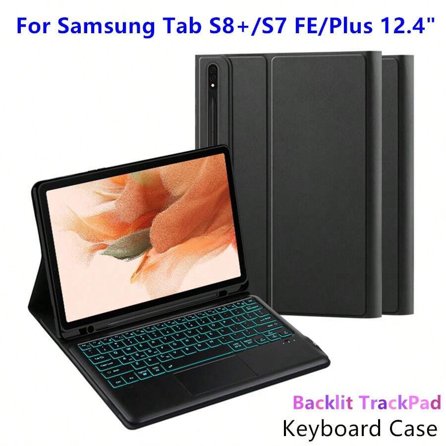 Backlit TrackPad Keyboard Case Book Cover For Galaxy Tab S8+ / S7 FE /Plus 12.4 inch s7fe SM-X800 X806/T730 T735 T736/ T970 T975 Tablet Magnetic separation Smart TouchPad Keyboards Slim