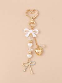 Unisex Y2K Cute Beaded Bow Pendant, Fashionable Large Heart-Shaped Bag Charm, Silver Heart-Shaped Rotating Hook Design, Spring Clasp, Starfish, Bow And Heart Element Phone Charm Keychain, Starfish Phone Charm Keychain, Elegant Ladies Accessory, Bag Charm, Party And Holiday Gift, Gift For Female College Students And Teachers, Unique Gift For Family And Friends #4 Bestseller