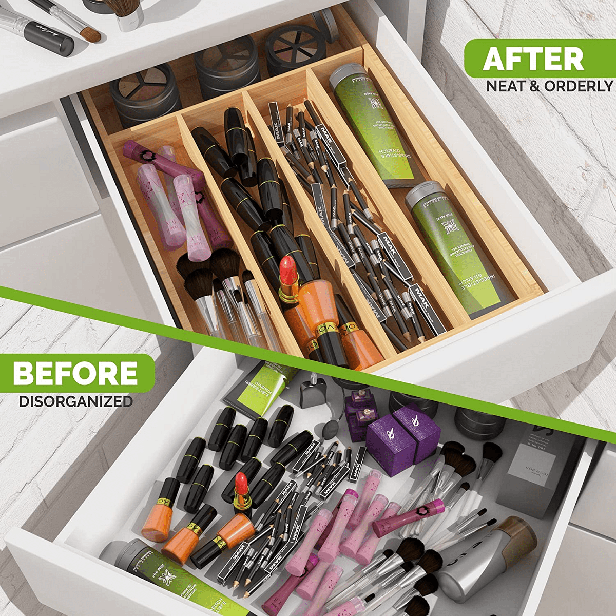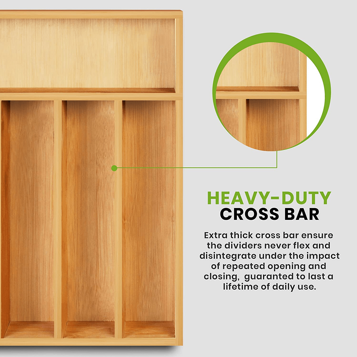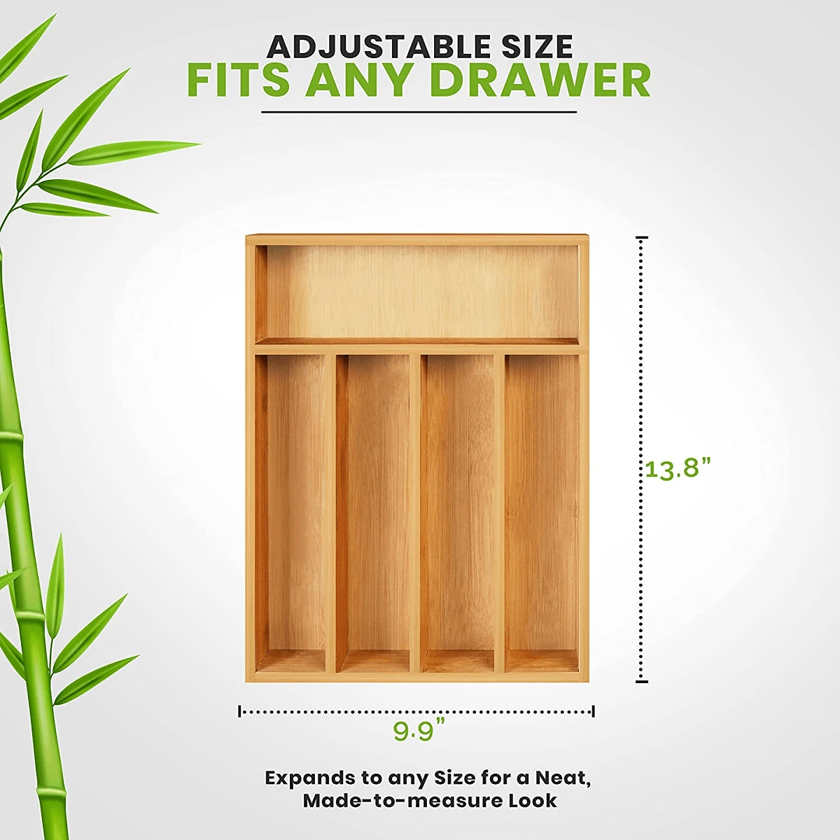 Bamboo Silverware Organizer - 5 Compartments - Bamboo Drawer Organizer 14 X 10 X 2.36 Inches - Bamboo Hardware Organizer (Natural)