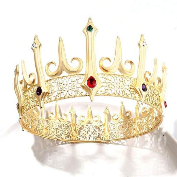 Baroque Style Circular Crown Party Headwear With Gold Plating