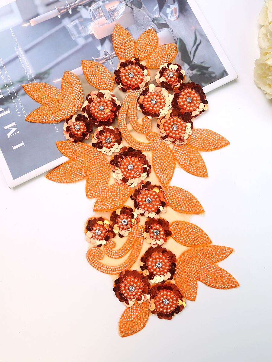 Bead Embroidery Hot Drilling Garment & Home Textile Diy Accessory 3d Flower With Sequin & Lace Fabric Material - Width: 21.5cm
