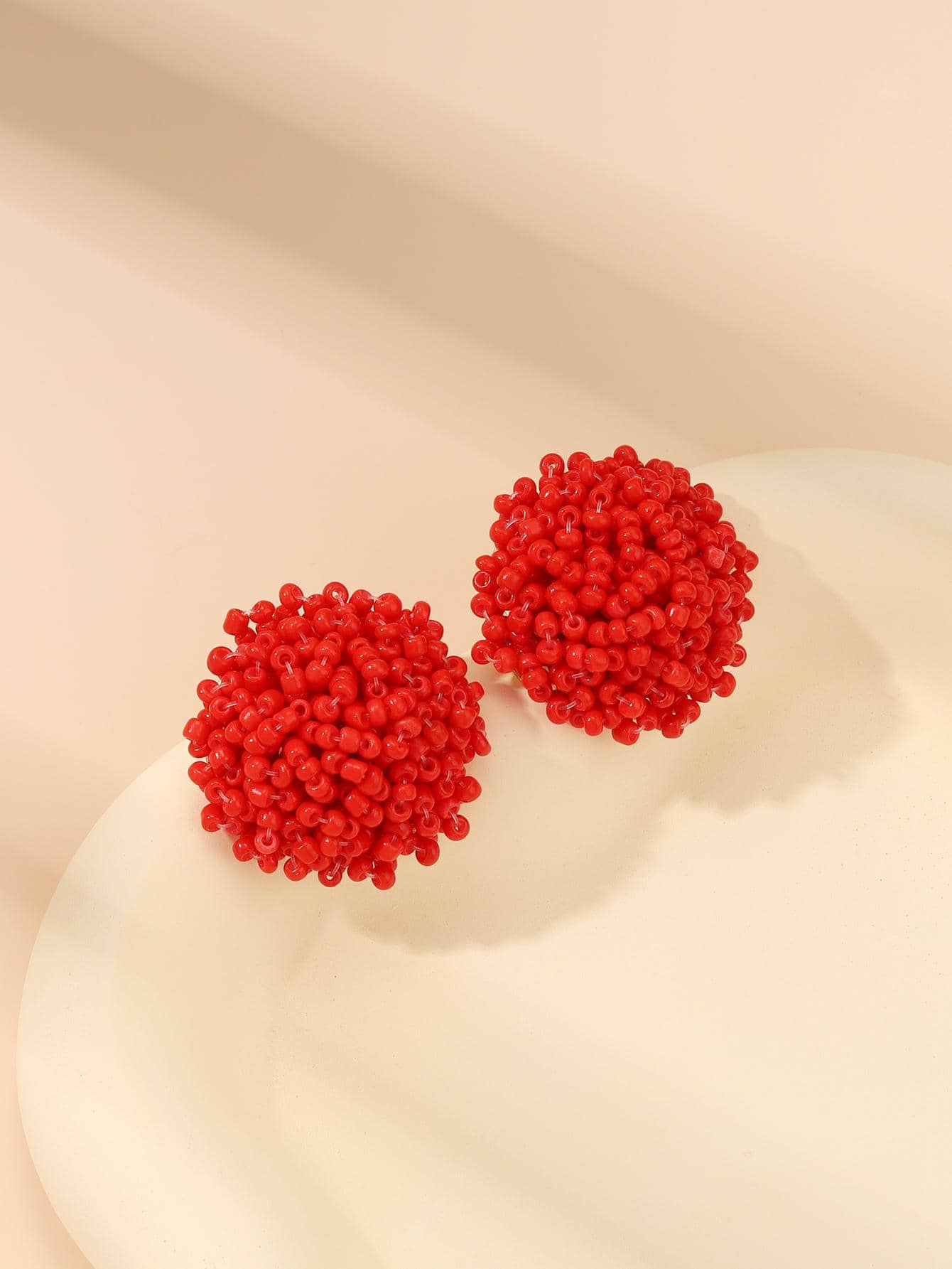 Beaded Round Stud Earrings