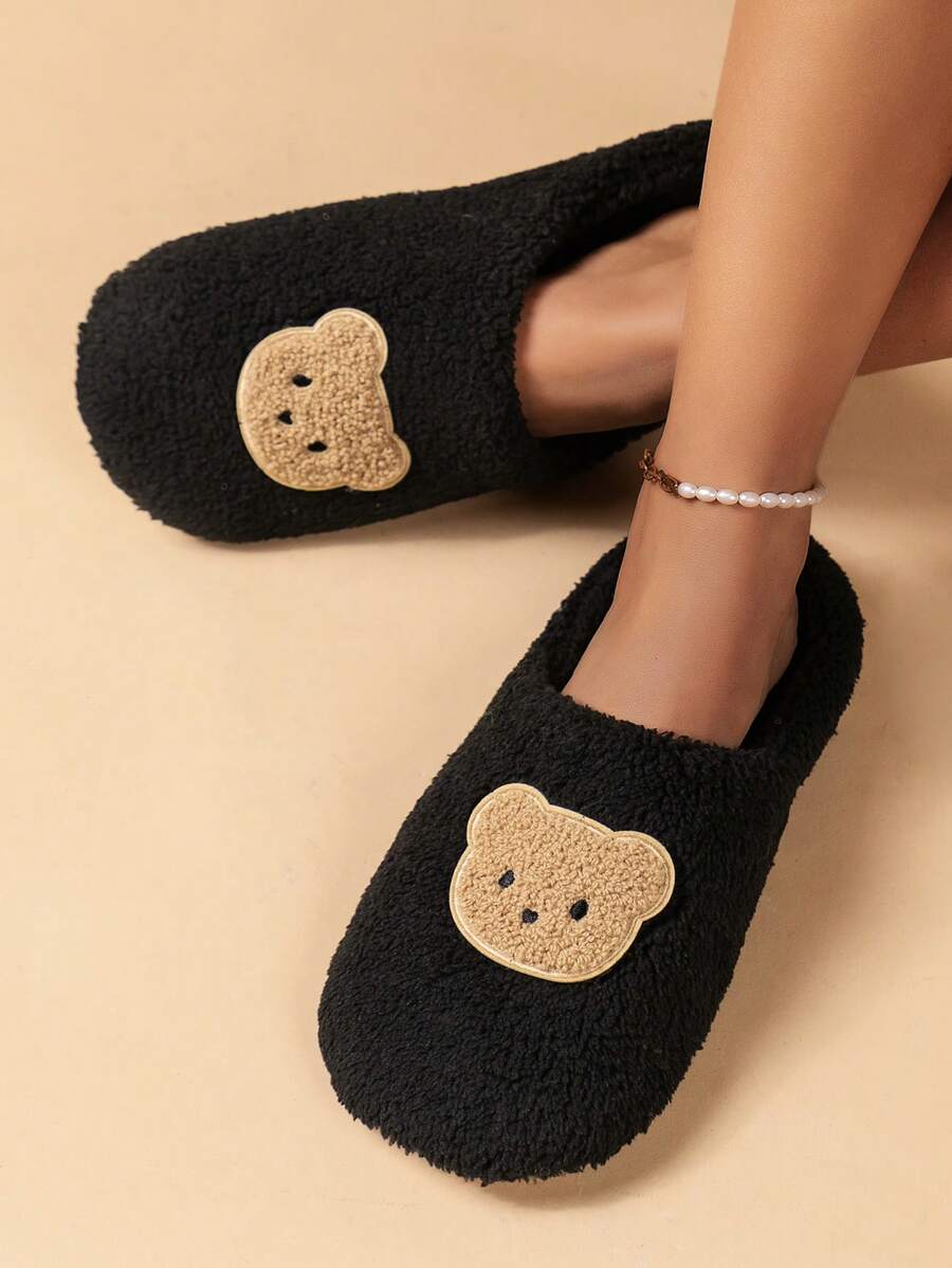 Bear Patch Decor Fuzzy Bedroom Slippers
