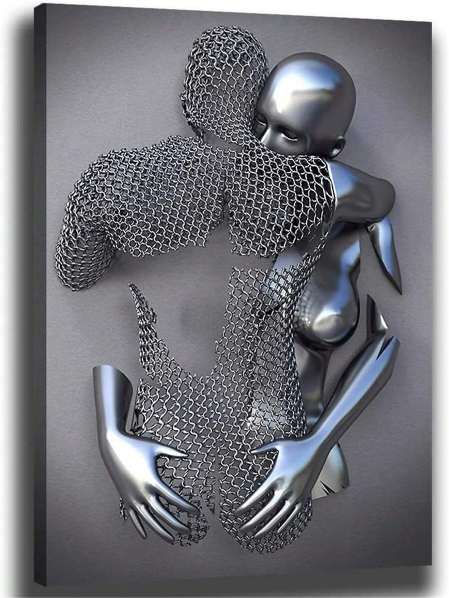 Bedroom Wall Decor,Romantic Couple Living Room Canvas wall art,Love Heart 3D Metal Sculpture Effect,Black and White Modern Abstract hug Lovers Painting Picture Poster Prints for Bathroom Hotel