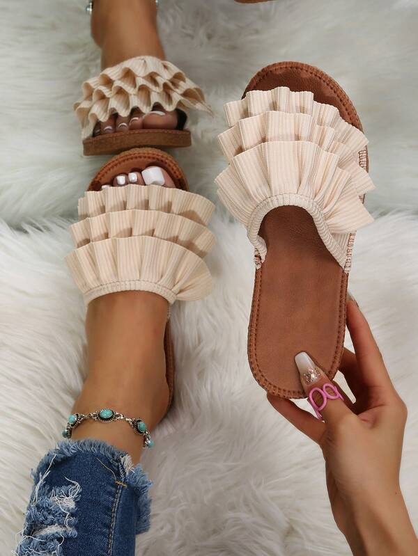 Beige Irregular Lace-Up Slides Women'S Fashionable Anti-Slip Sandals For Outdoor Activities