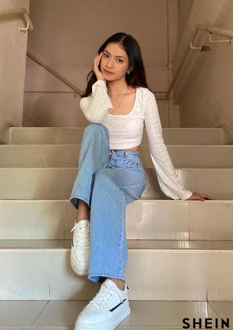 SHEIN EZwear Bell-Sleeved Knitted T-Shirt