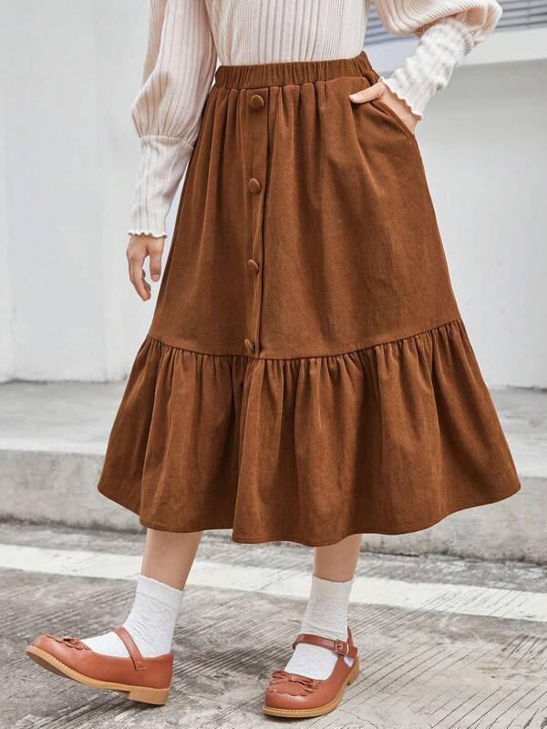 SHEIN Kids KDOMO Big Girls' Loose Fit Split Design A-line Skirt For Casual Wear