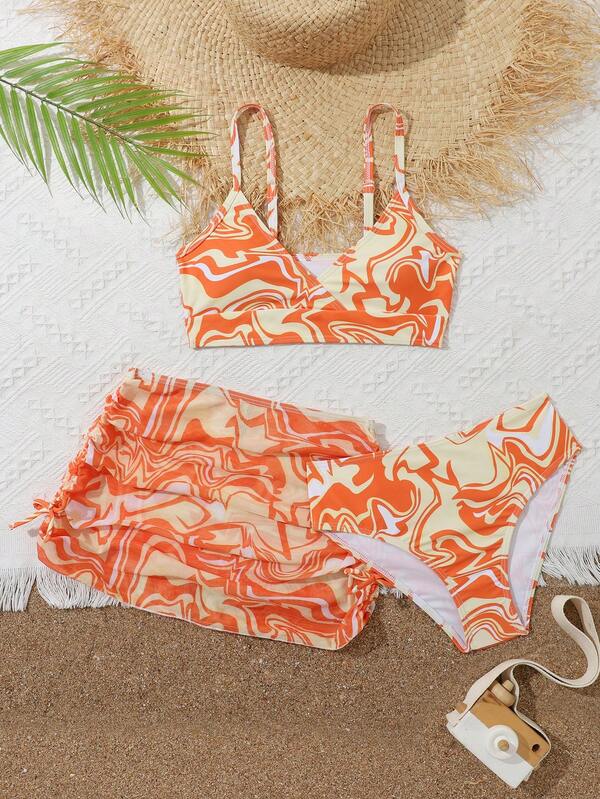 Big Girls' Marble Print Three Piece Swimsuit Set