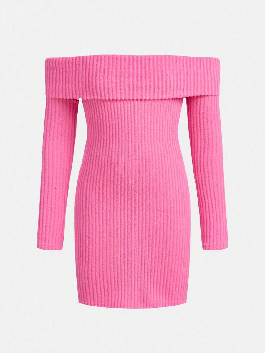SHEIN Kids EVRYDAY Big Girls' Solid Color Knitted Slim Fit One-Shoulder Casual Dress
