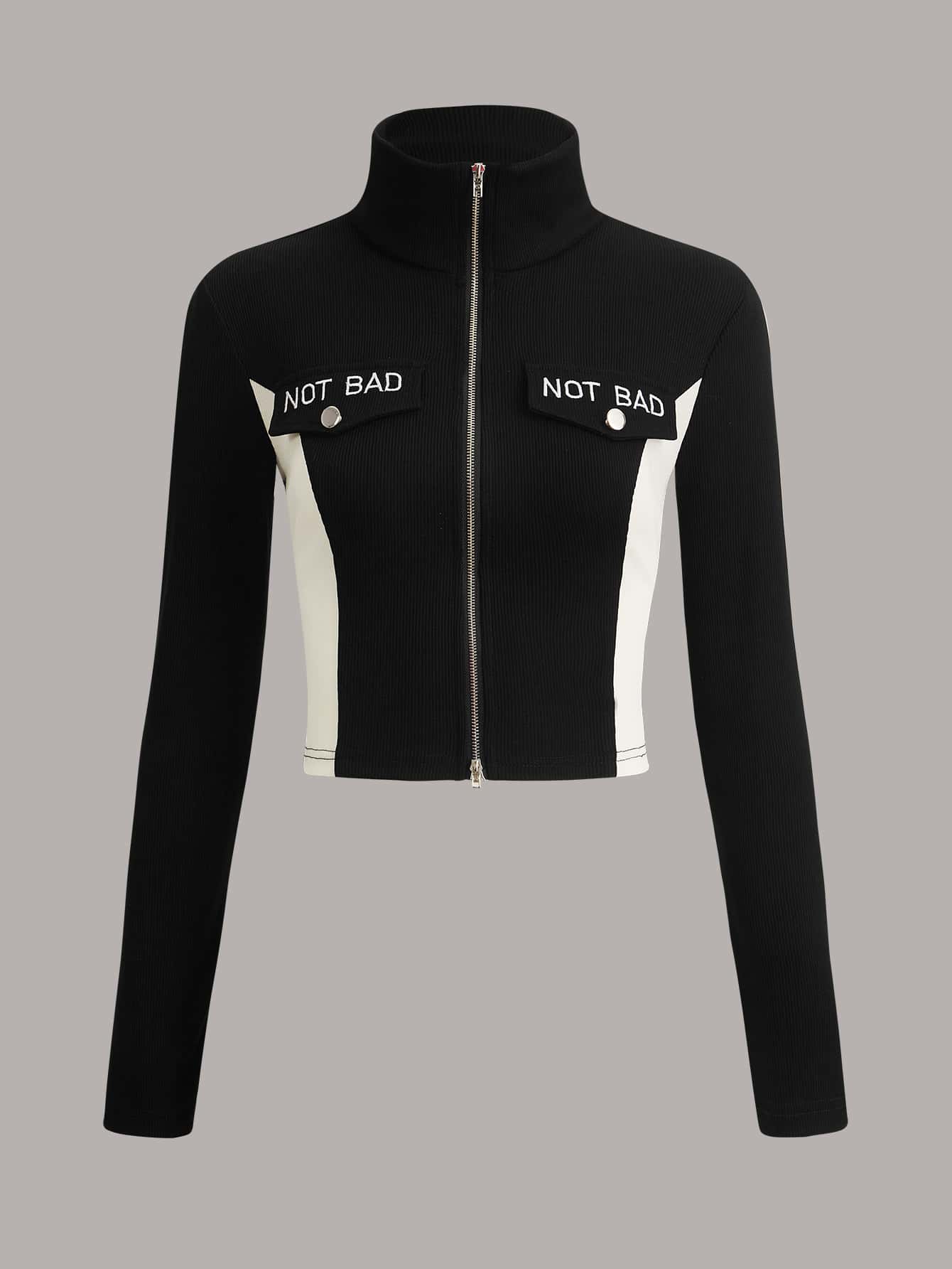 SHEIN ICON Bikercore Letter Graphic Colorblock Zip Up Crop Tee