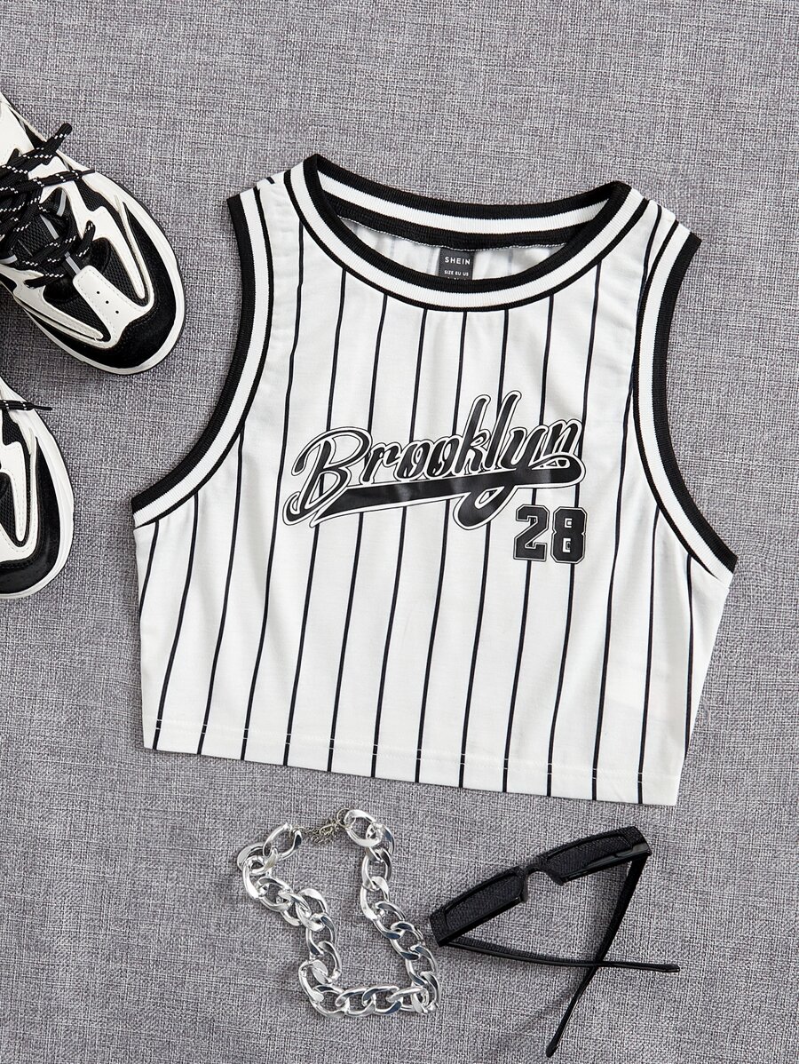 SHEIN EZwear Bikercore Striped & Letter Graphic Crop Tank Top