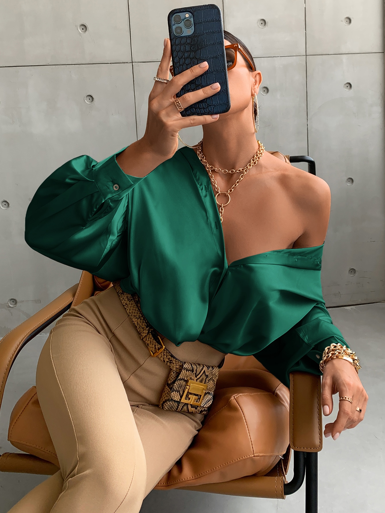SHEIN Privé Bishop Sleeve Button Up Solid Shirt