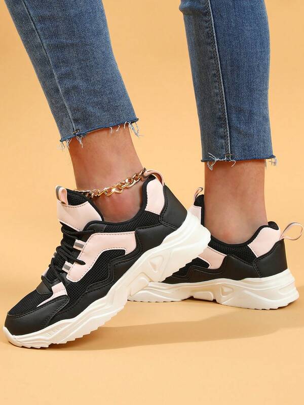Black & Pink Trendy Soft & Breathable Dad Shoes For Men And Women, Casual Sports Walking Shoes