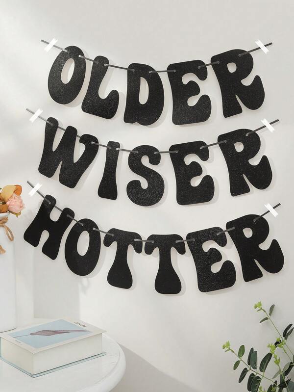 Black 'older Wiser Hotter' Fantasy Silver, Green, Pink, Pull Flag Disco Birthday Party Decoration Banner, Set Of 1