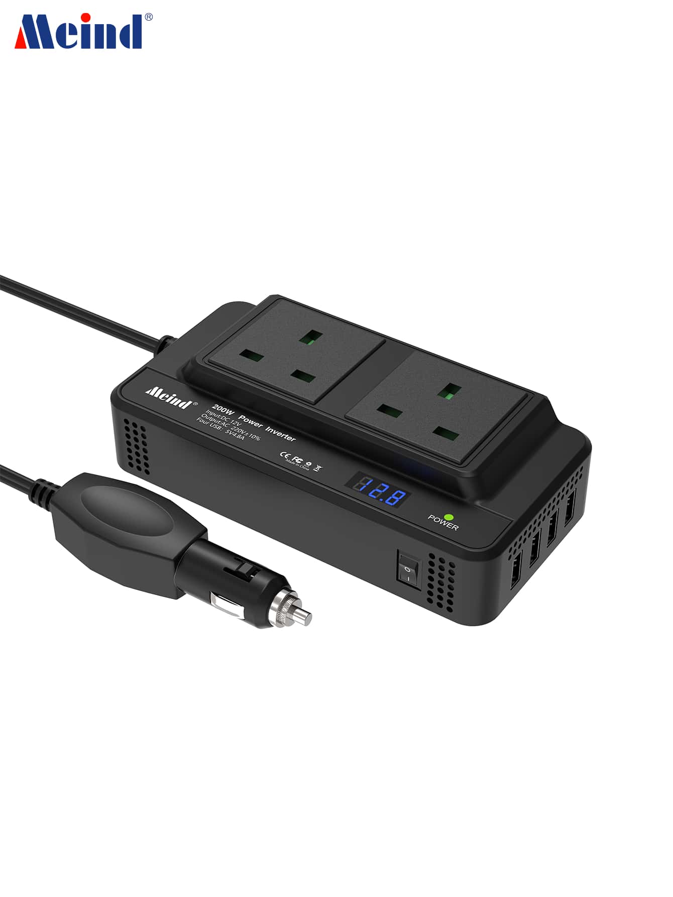 Black 200w Car Power Inverter, 12v To 220v With 2 Uk Plugs, Compatible With Cars
