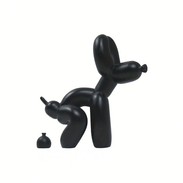 Black Creative Funny Poop Balloon Dog Sculpture, Modern Art Sitting Balloon Dog Animal Decorative Statue For Indoors Such As Living Room, Farmhouse, Bedroom, Office, Furniture, Closet, Shelf Decoration