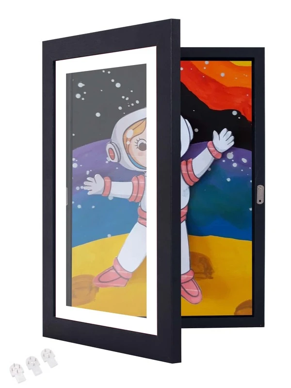 Black Flip-open Picture Frame Storage Box For Children's Artwork