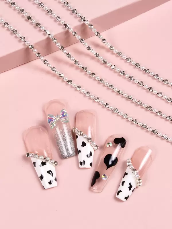 Black Friday Instantly Upgrade Your Look with 3d nail art decoration 100cm Rhinestone Faux Pearl chain nail decoration DIY For Women And Girls