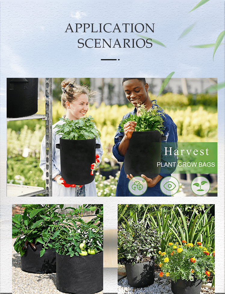 Black Non-Woven 5 Gallons 5 Packs/3 Packs Plant Growth Bags With Handle Free 10 Insert Label Seedling Bags Potato Planting Bags Vacuum Packing