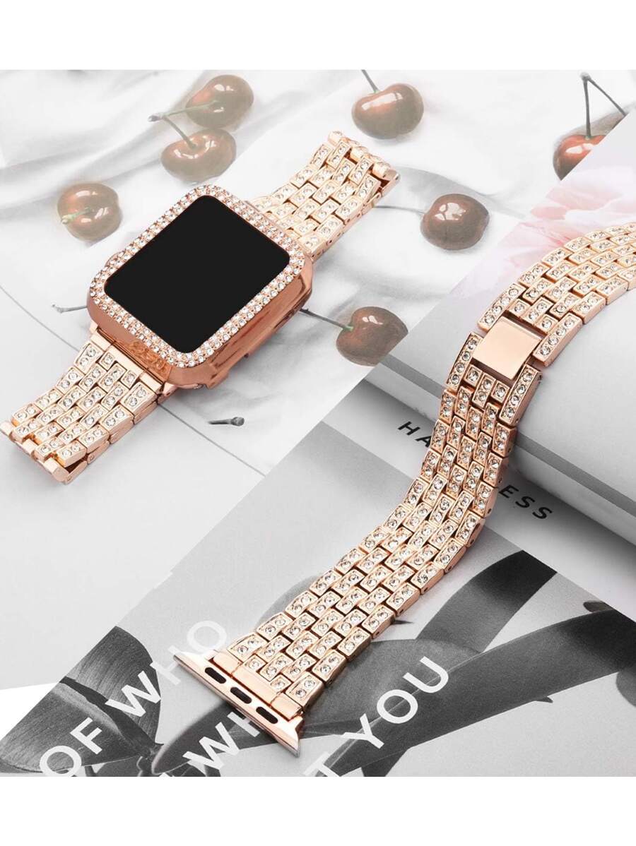 Bling Band Compatible With Apple Watch Case 38 40 42 41 45mm, Compatible With Apple Watch Series 3 4 5 6 7 8 Se, Metallic Beaded Rhinestone Bracelet Women's Watchband Replacement