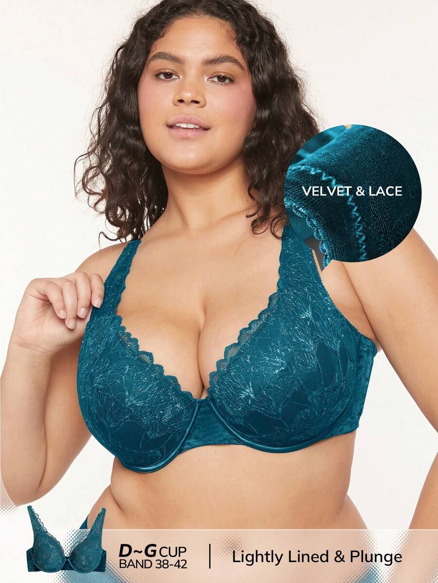 Luvlette Blue Printed Plus Size Bra With Lace Trim