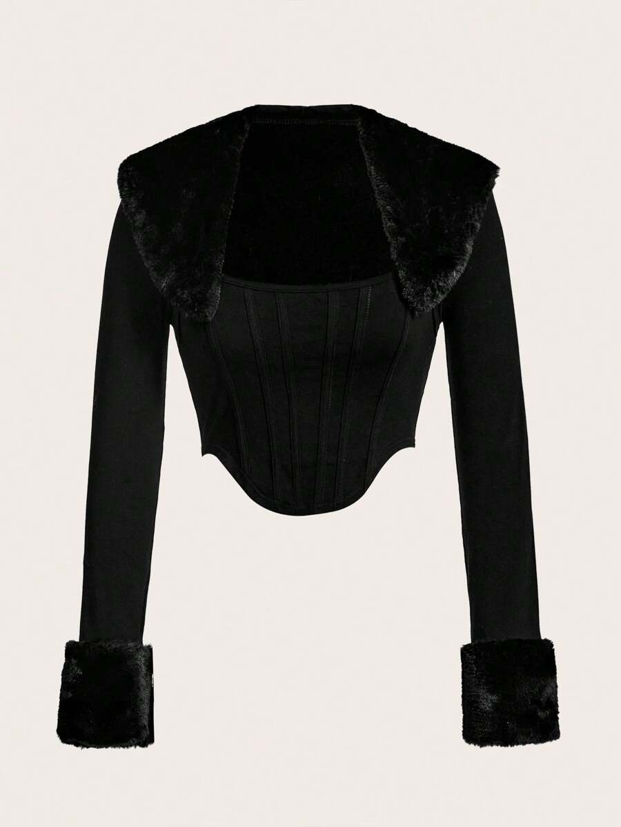 SHEIN ICON Borg Collar Asymmetrical Hem Crop Tee
