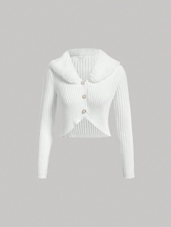 SHEIN MOD Borg Collar Crop Cardigan