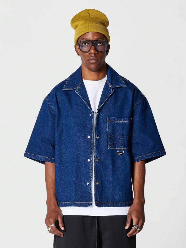 SUMWON Boxy Fit Revere Collar Denim Shirt