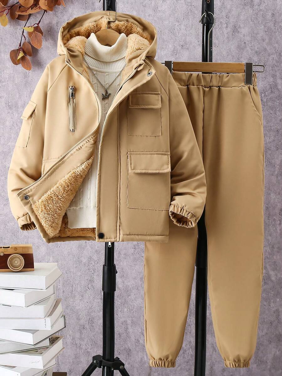 SHEIN Boy's Fleece-lined Jacket And Long Pants Set