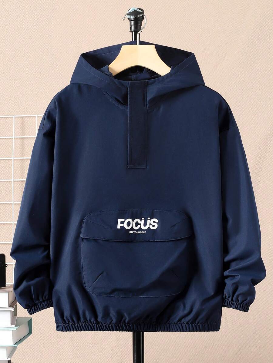 SHEIN Boys’ Casual Loose Fit Sports Hooded Jacquard Pullover Jacket, Youth Size