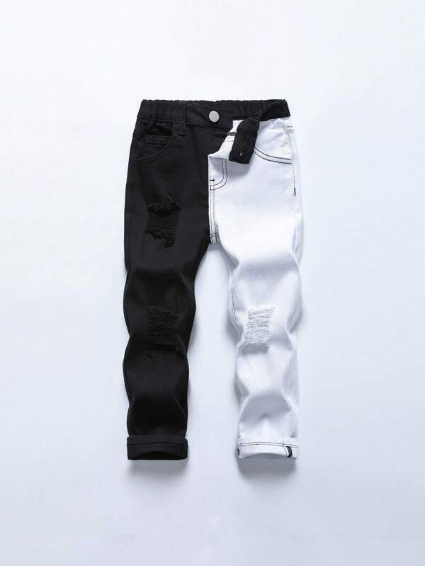 Boys' Cool And Trendy Street Style Slim Fit Ripped Jeans With Color Block Design