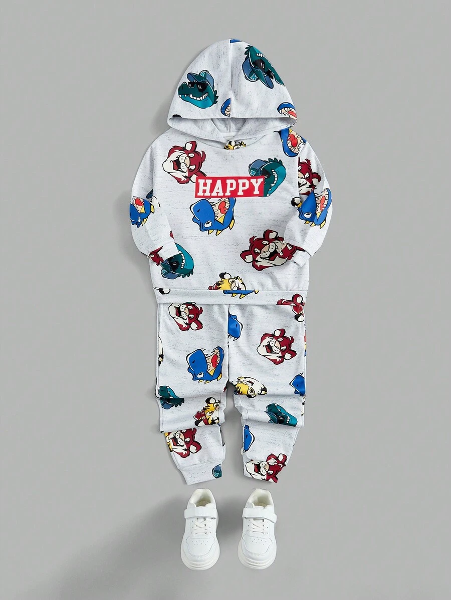SHEIN Boys' Cute And Comfortable Cartoon Animal Head Hoodie And Knitted Pants Set