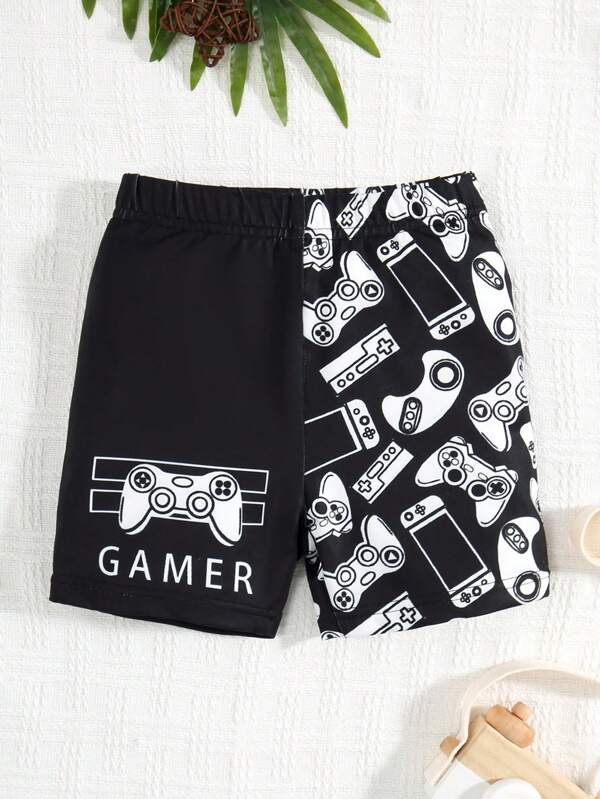 SHEIN Boys' Loose Casual Cartoon Pattern Swimsuit Shorts