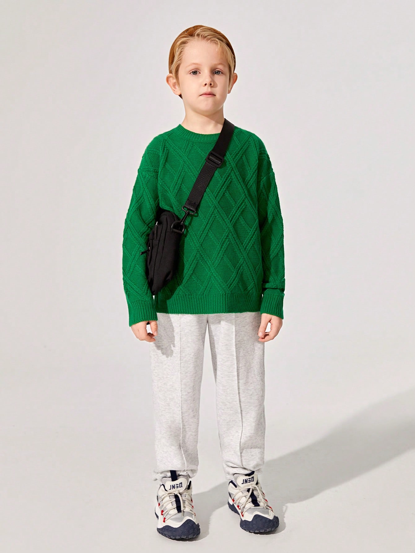 JNSQ Boys' Loose-fit Round Neck Long Sleeve Drop Shoulder Sweater, Casual