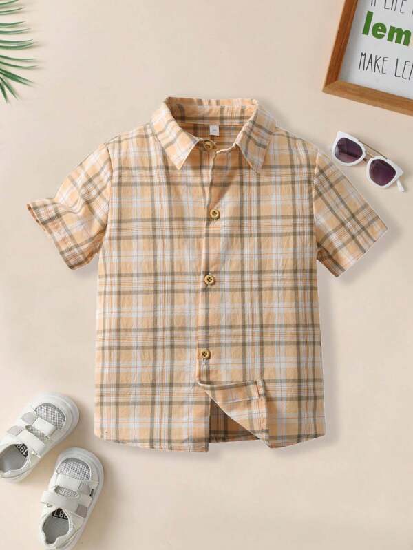 Boys' Plaid Print Button-Front Short Sleeve Shirt