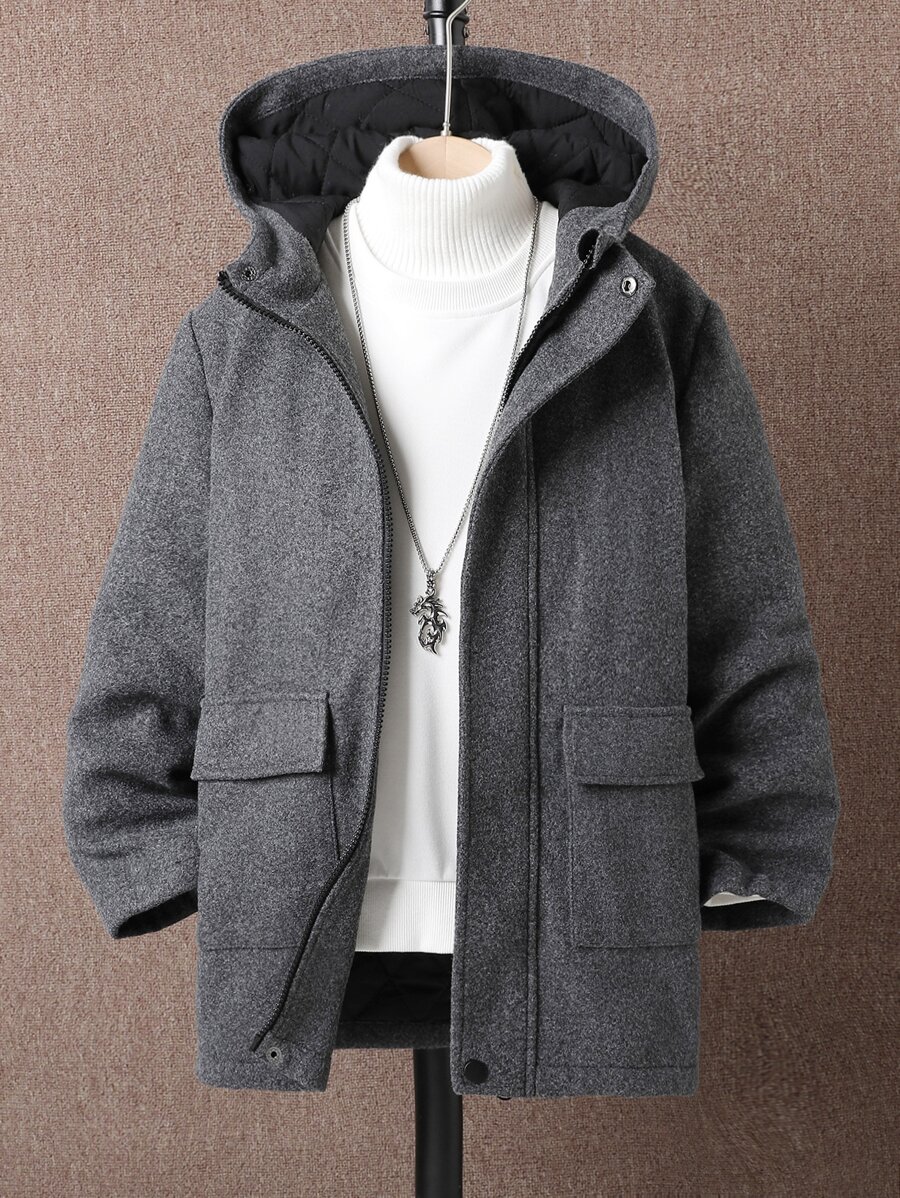 SHEIN Boys 1pc Flap Pocket Zipper Hooded Tweed Overcoat