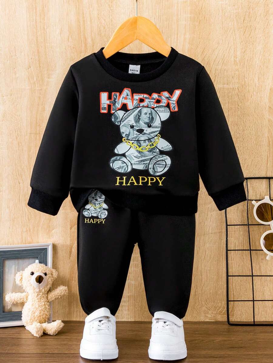 SHEIN Boys Baby Bear And Letter Graphic Sweatshirt & Sweatpants