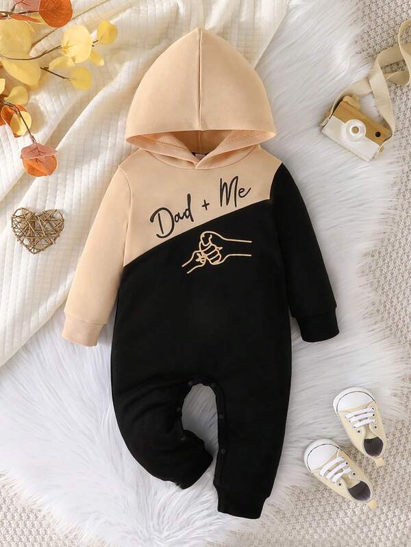 Newborn Baby Boy Letter Graphic Two Tone Hooded Jumpsuit