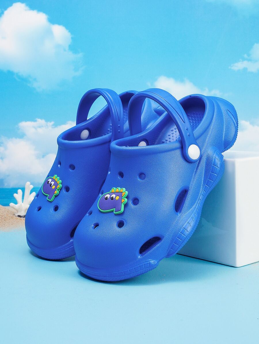 Boys Breathable Cartoon Dinosaur Decor Hollow Out Vented Clogs, Cute Blue EVA Clogs