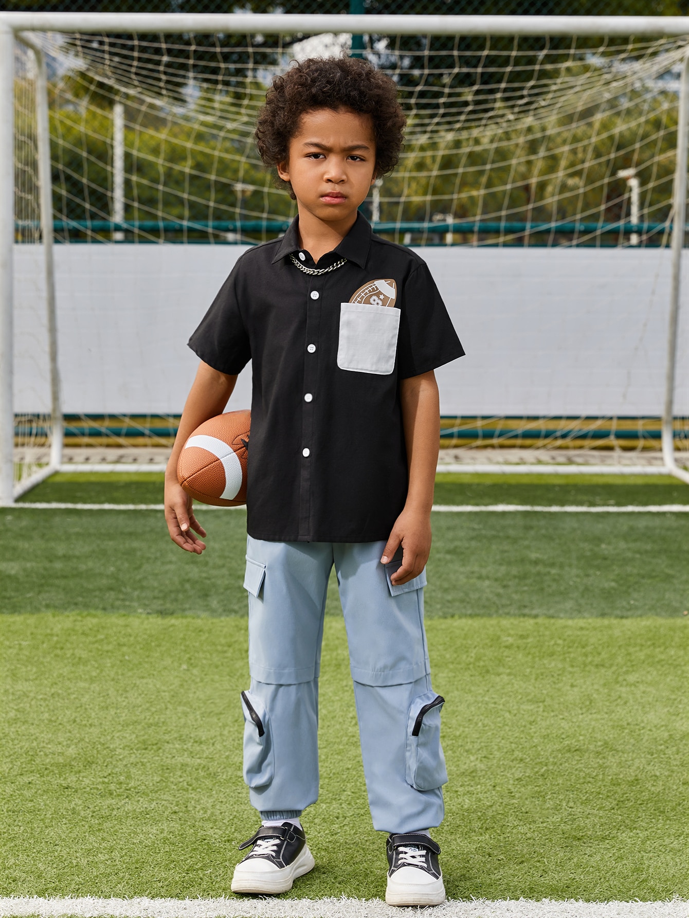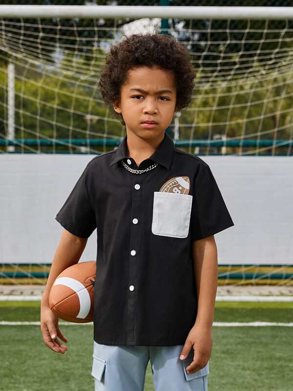 SHEIN Boys Cartoon Graphic Patched Pocket Shirt