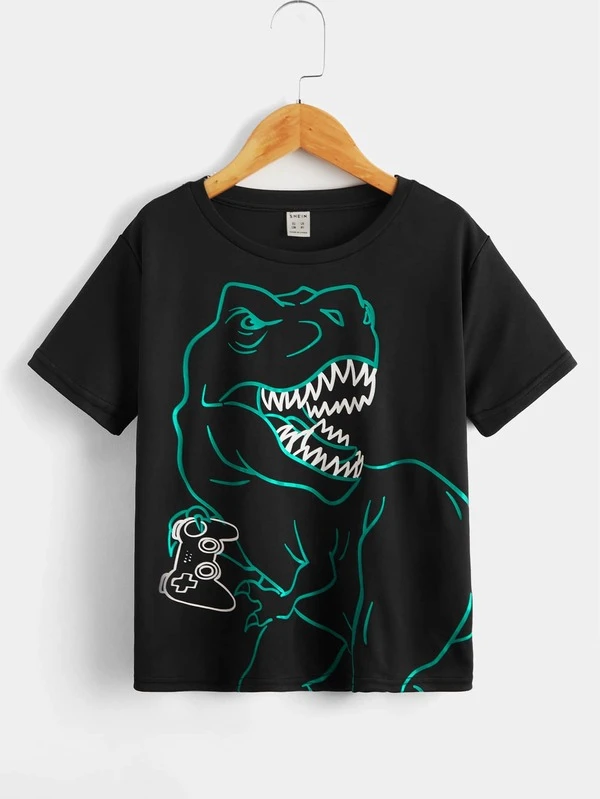 SHEIN Kids EVRYDAY Boys Gamepad & Dinosaur Print Tee