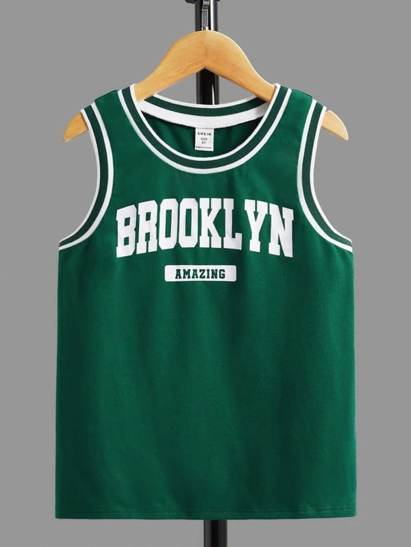 SHEIN Kids SPRTY Boys Letter Graphic Contrast Trim Basketball Jersey Tank
