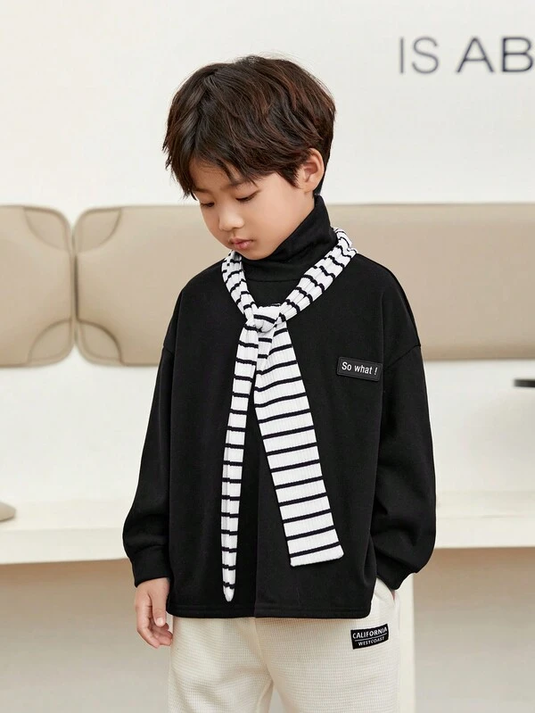 SHEIN Boys Letter Graphic Drop Shoulder Tee With Scarf
