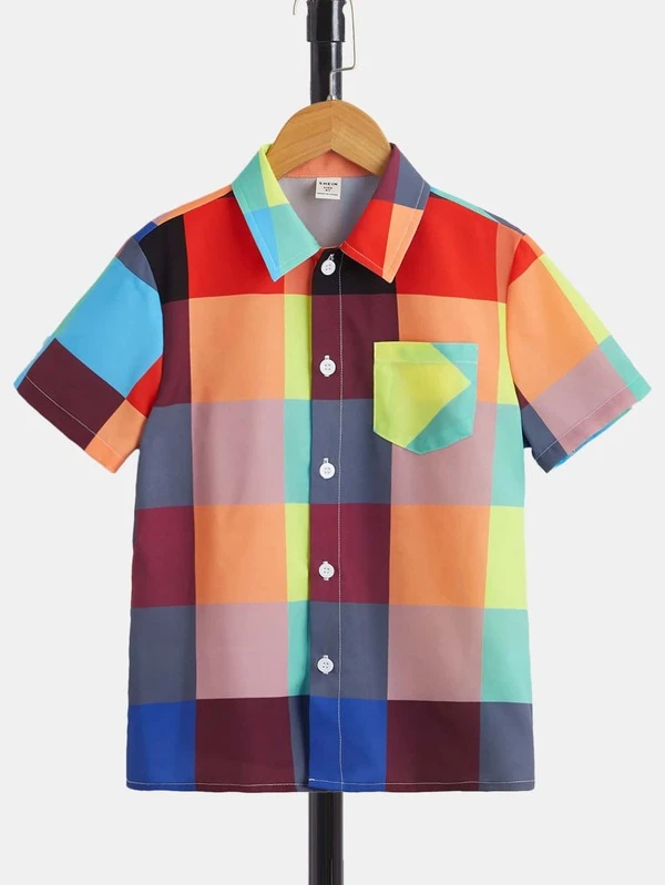 SHEIN Kids SUNSHNE Boys Plaid Print Pocket Patched Shirt