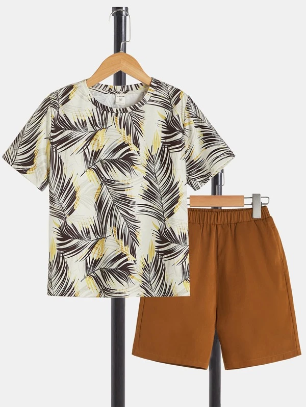 SHEIN Boys Tropical Print Tee & Shorts