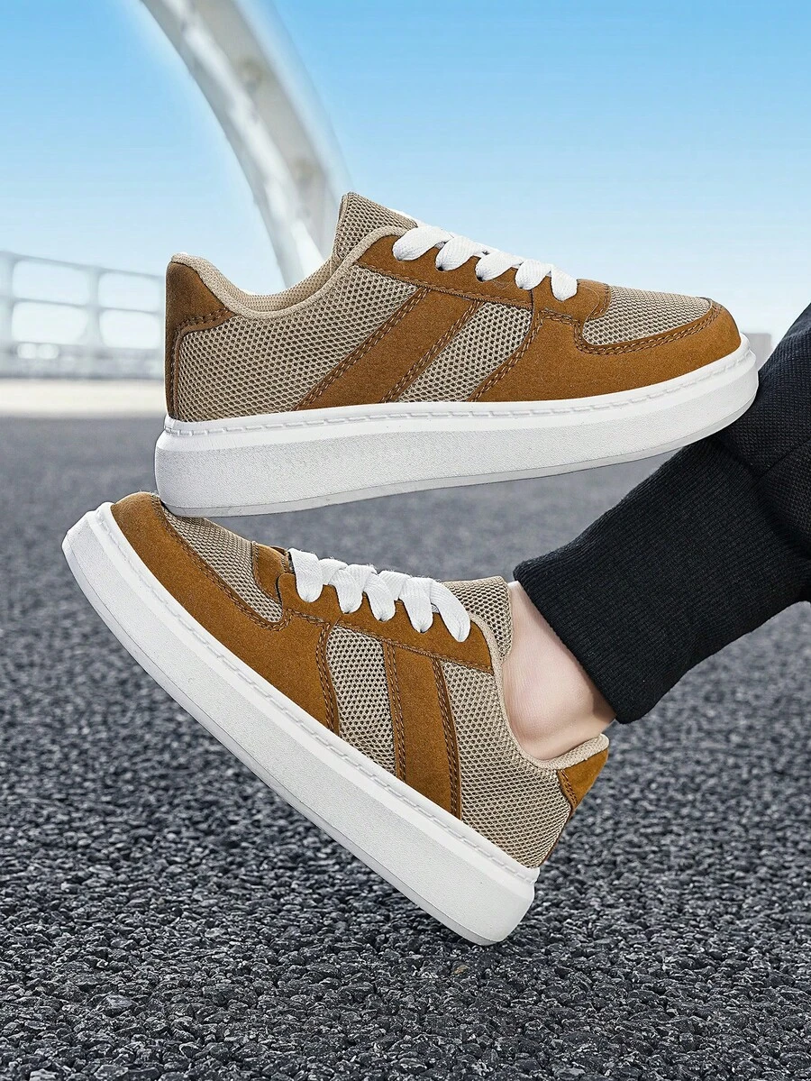 Boys Two Tone Lace Up Front Comfortable Sporty Skate Shoes For Outdoor