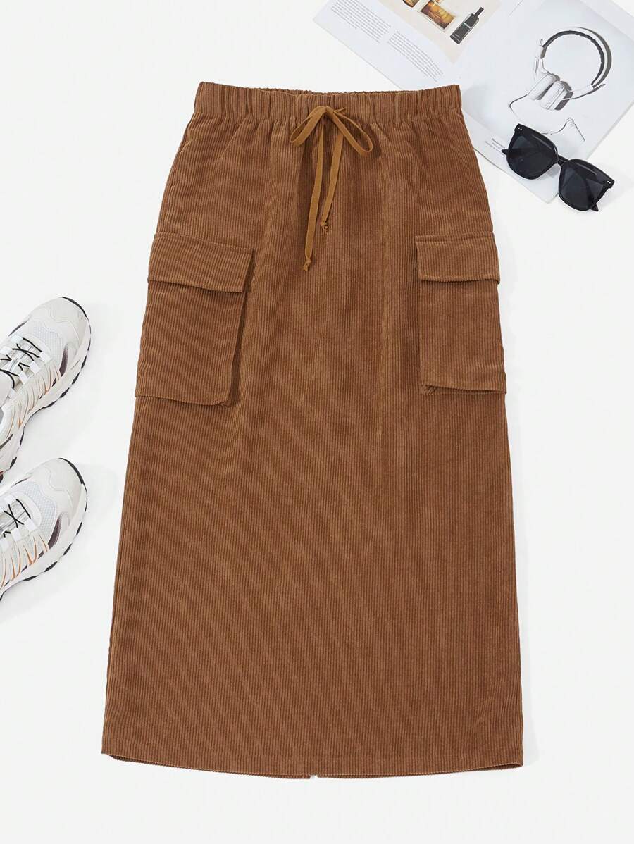 SHEIN EZwear Brown Woven Corduroy Skirt